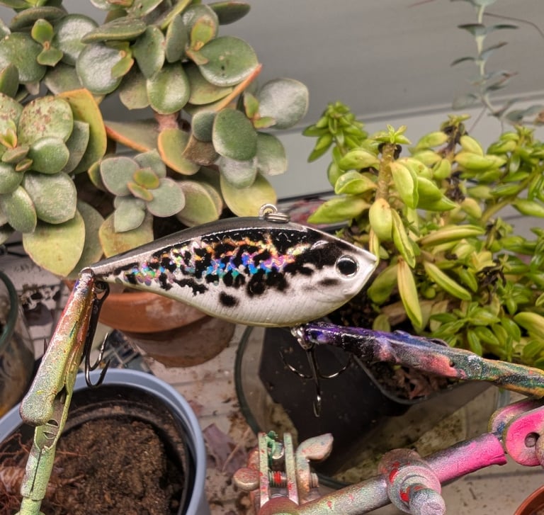 Hand-painted lures in various shapes and colors, ready to attract your next big catch.